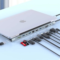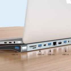 • Adaptador 12 en 1.• Velocidad máxima de Ethernet 100 Mbps.• El uso de 4K 30 Hz en el puerto HDMI requiere una transmisión estable de vídeo y audio sincronizada.• Carga rápida.