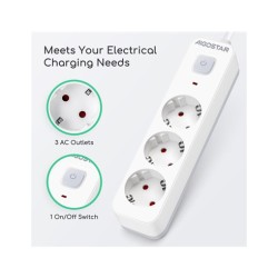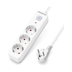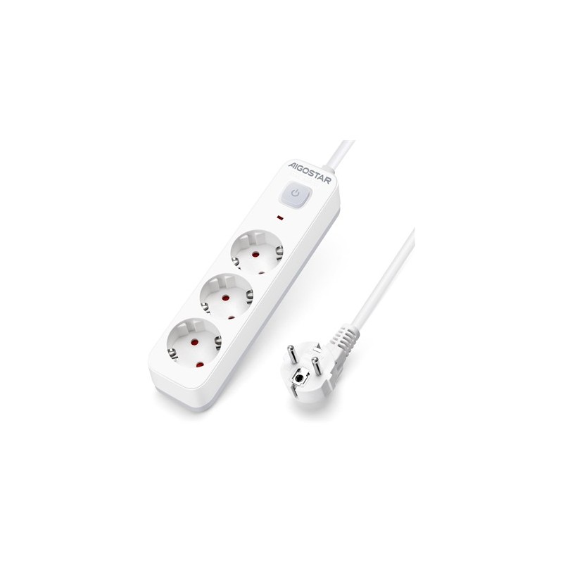 Aigostar Regleta Enchufes, Alargador Enchufe de 3 Enchufes con Interruptor, Cable de 3 Metros, BlancoMarca AigostarLongitud del cable 3 MetrosColor 3m CableTotal de tomas de corriente 3Tensión 125 VoltiosFunción especial Práctico interruptor, iluminación suave, posibilidad de montaje en pared, posicionamiento de enchufe de 45°Práctico interruptor, iluminación suave, posibilidad de montaje en pared, posicionamiento de enchufe de 45°Dimensiones del producto 20,6l. x 4,8an. centímetrosUsos recomendados para el producto Cargar múltiples dispositivos, abastecer de energía a diversos electrodomésticos, y garantizar seguridad al utilizar dispositivos eléctricosCargar múltiples dispositivos, abastecer de energía a diversos electrodomésticos, y garantizar seguridad al utilizar dispositivos eléctricosForma rectangular prismTotal de puertos USB 2Interruptor Conveniente - Este enchufe multiple tiene un interruptor muy conveniente, ya no tiene que enchufar o desenchufar el cable de alimentación cada vez con dificultad, también puede ahorrar más electricidad.La regleta enchufes tiene una luz rojo suave Indicadora. El brillo suave no te molestará cuando duermas.Protección Independiente - Cada enchufe, dispone de un dispositivo de protección infantil independiente, lo que es totalmente seguro para los niños y evita accidentes y riesgos de descarga eléctrica. Al cuidar la seguridad de su familia, también puede evitar que objetos extraños entren en la toma de corriente.Enchufes Colocados en 45º - Con enchufes colocados en un ángulo de 45°, evitando la interferencia entre las tomas de corriente. La longitud del cable de alimentación es de 1,5 m de largo, esto nos da mucha más flexibilidad.Agujeros Para Montaje en Pared - Los 2 orificios ranurados en la parte posterior también le permiten colgarlo de manera segura en varios lugares: pared, bancos de trabajo, escritorio, debajo de los mostradores y más. lo que ahorra espacio en el escritorio y brinda comodidad para cargar.Materiales de calidad - Material duradero,para asegurar su resistencia al calor.Gracias a su circuito de cobre,admite el uso de productos de potencia hasta los 3680W, una gama más amplia de aplicaciones.Marca: AigostarFabricante: AigostarModelo: HU-XI-201Dimensiones del producto: 20,6 x 4,8 x 0,03 cm, 490 gNúmero de modelo del producto: HU-XI-201Número de producto: HU-XI-201Aparatos compatibles: Enchufe distribuidorOtras características: Práctico interruptor, iluminación suave, posibilidad de montaje en pared, posicionamiento de enchufe de 45°Número de productos: 1Voltaje: 125 VoltiosPotencia eléctrica: 3680 vatiosNúmero de puertos: 3Número de puertos USB: 2Tipo de material: PolipropilenoPeso del producto: 490 gMateriales DuraderosHilo de cobre de tres núcleos de alta calidad con gran capacidad conductiva, durabilidad y vida útil.Protección IndependienteCada enchufe, dispone de un dispositivo de protección infantil independiente,evita accidentes y riesgos de descarga eléctrica.Bipolar InterruptorRegleta enchufe múltiple para el uso en interiores con un interruptor de iluminado para encendido y apagado todas las tomas de corriente.Exterior IgnífugoLa carcasa exterior de la regleta mantiene los componentes internos seguros en caso de emergencias.