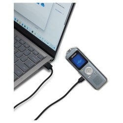 Grabadora de Voz Digital AIWA DVR-M700. Metálica con Tres micrófonos estéreo y Memoria incorporada de 16 GB. Color PlataMarca AiwaInterfaz de hardware USBCapacidad de almacenamiento de memoria 16 GBFabricante AiwaMemoria interna: 16GB, con capacidad para almacenar hasta 275 horas de grabación (16kHz/64kbps).Ampliación de memoria: Ranura para tarjeta microSDHC que soporta hasta 128GB adicionales.Pantalla: OLED con retroiluminación LCD, de alta claridad para una experiencia visual mejorada.Micrófono de alta calidad: Sistema de tres micrófonos (Three-MIC Stereo) de dos canales para grabaciones en estéreo precisas y detalladas.Funciones avanzadas: VOR (Grabación Activada por Voz): Detecta automáticamente el sonido y activa la grabación, optimizando recursos. Monitorización de grabación: Permite supervisar la grabación en tiempo real.Formatos de grabación y reproducción: Grabación: MP3 y WAV. Reproducción: Compatible con formatos WAV, MP3, WMA y AAC para versatilidad de reproducción.Conectividad y entradas: USB-C 2.0 de alta velocidad: Para transferencias de datos rápidas a una PC. Entrada Line-in: Conector estéreo de 3.5mm para grabar desde fuentes externas. Conector para auriculares: Ofrece una experiencia de reproducción privada y de calidad.Sintonizador FM: Incluye la función de grabación de emisoras de radio FM.Duración de la batería: Aproximadamente 21 horas de grabación en formato MP3 a 128kbps, ideal para sesiones prolongadas.Diseño portátil y resistente: Dimensiones de 106 x 36,8 x 15 mm y peso de 53.5g, fácil de transportar y usar en cualquier lugar.Una grabadora compactaLa grabadora AIWA DVR-M700 ofrece audio de alta calidad con 16 GB de memoria expandible, tres micrófonos estéreo y grabación activada por voz. Compacta y funcional, incluye USB-C, batería recargable y sintonizador FM con grabación, ideal para cualquier necesidad.¡Deja de tomar apuntes!Captura cada palabra sin esfuerzo. Olvídate de escribir a toda prisa durante reuniones, clases o entrevistas. Gracias a sus tres micrófonos estéreo, función de grabación activada por voz (VOR) tendrás un registro claro y completo en todo momento. Compacta, ligera y con batería de larga duración.Conexión a tu ordenador, fácil y rápidaPasa tus grabaciones al ordenador sin complicaciones gracias a su conexión USB-C de alta velocidad que te permitirá mover archivos a tu ordenador en segundos. Ideal para organizar, editar y compartir tus audios, esta función convierte a la DVR-M700 en un dispositivo versátil para estudiantes, profesionales y creativos. ¡Conecta, transfiere y sigue adelante!Activación por voz (VOR)Esta función de la grabadora AIWA DVR-M700 permite iniciar la grabación automáticamente al detectar sonido y detenerla en momentos de silencio. Esto ayuda a optimizar el uso de la memoria y facilita la reproducción al enfocarse solo en las partes relevantes.Memoria integradaCon 16 GB de memoria interna, esta grabadora ofrece capacidad para almacenar largas sesiones de grabación, alcanzando hasta 275 horas en formato comprimido.Memoria externaSi necesitas más capacidad de memoria, la grabadora permite ampliar su memoria con tarjetas Micro SDHC de hasta 128 GB. Puede ser la solución ideal para quienes buscan capturar y guardar grabaciones de larga duración.Entrada AUX IN para mayor versatilidadGracias a su entrada de línea (Line-In) con conector estéreo de 3,5 mm, la grabadora AIWA DVR-M700 permite la captura de audio desde diversas fuentes externas, como mezcladoras, reproductores o instrumentos musicales y/u otros micrófonos externos. Esta característica amplía sus posibilidades de uso, siendo una solución eficiente para proyectos que requieren una calidad de audio superior.Radio FMCuenta con sintonizador FM integrado, que te permite escuchar emisoras de radio directamente desde la grabadora. Además, cuenta con la función de grabación FM, para que puedas grabar tus programas, música o noticias favoritas y escucharlas cuando lo desees.3 micrófonosEstá equipada con tres micrófonos estéreo, diseñados para capturar una calidad de audio excepcional. Este sistema captura el sonido en dos canales (estéreo), brindando mayor claridad y una experiencia de grabación más envolvente.USB-CCon su puerto USB-C, ofrece una solución moderna para transferir tus grabaciones al ordenador de forma rápida y sencilla. Este tipo de conexión no solo asegura velocidad, sino también facilidad de uso, permitiendo además cargar la batería integrada con mayor eficiencia. Una herramienta práctica para quienes buscan tecnología avanzada en un dispositivo compacto.Batería recargableEstá equipada con una batería de litio integrada, diseñada para ofrecer hasta 21 horas de grabación continua en formato MP3 (128 kbps). Esta autonomía la hace ideal para largas sesiones de grabación, como por ejemplo, un día en la universidad, una sesión larga de declaraciones, o una reunión importante.Marca: AiwaFabricante: AiwaModelo: DVR-M700Dimensiones del paquete: 13,7 x 10,7 x 3,4 cm, 160 gNúmero de modelo del producto: DVR-M700Número de producto: DVR-M700Capacidad de la memoria: 16 GBInterfaz del hardware: USBComponentes incluidos: Auriculares, Cable USBNúmero de productos: 1Pilas / baterías necesarias: NoPeso del producto: 160 g