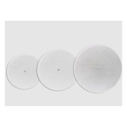 Diseñado para aplicaciones de audio comercial, este altavoz de techo dispone de un transductor fabricado en kevlar, obteniendo un alto rendimiento en inteligibilidad de palabra y claridad musical. Su selector de potencia, lo hace adaptarse a instalaciones de alta impedancia (con varias posiciones dependiendo del modelo), y de baja impedancia. El cuerpo del altavoz está fabricado en plástico ABS y su rejilla metálica, fijada con imanes, cubre casi la totalidad del altavoz, configurando un elemento discreto en cualquier instalación. - Transductor de kevlar.- Baja impedancia y línea de 70/100 V.- Tweeter orientable.- Dimensiones del producto (m) 0.28 x 0.28 x 0.11 Datos Técnicos- Tipo Pasivo. 2 ví­as- Potencia a baja impedancia 45 W @ 8 Ohm- Potencia 100V 40 W / 30 W / 20 W / 10 W- Transductor LF Woofer 8"- Transductor HF Tweeter orientable 1"- Rango Frecuencias 40 Hz - 20 KHz- Cobertura 130º x 130º- Sensibilidad 94 dB- Max SPL 110 dB- Diámetro de montaje 246 mm- Profundidad de montaje 95 mm- Material Recinto: Plástico ABS; Reja: metal- Color Blanco- Dimensiones Ø282 x 105 mm- Peso 1.6 Kg