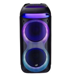 • Altavoz bluetooth con un micrófono inalámbrico.• Potencia 300W.• Woofer 8" (x2).• Puertos USB y SD para reproducir música.• Luces LED con diferentes modos de iluminación.• Función TWS y REC.• Radio FM.• Entrada AUX y MIC.• Incluye mando a distancia.• Medidas: 25.5x26.5x54 cm.