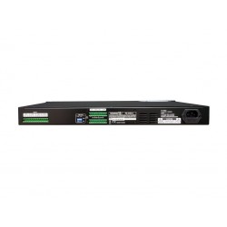 PA 4150 L es un amplificador de instalación de 4 canales de 150W cada uno, clase D. Puede funcionar tanto en línea 70V como 100V (seleccionable a través de dip-switches). Cada canal dispone de su propio control de volumen e indicadores LED (señal, clip y protección). El amplificador PA 4150 L integra varias protecciones como cortocircuito, térmica, ultrasonidos y RF. Sus entradas y salidas se conectan por medio de terminales Euroblock, y tiene unas dimensiones de 1 HU rack 19''. Amplificador de instalación de 4 canales. Funcionamiento a 70/100 V (seleccionable). Potencia de salida (70/100 V): 4x 150W. Control de volumen en cada canal. Dimensiones de 1 HU rack 19''. Fuente conmutada, amplificador clase D.