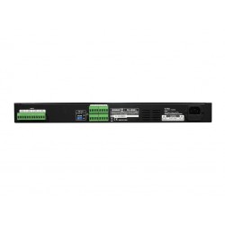 El amplificador PA 4500 L ofrece 4 canales clase D con 500 W por salida. Puede funcionar tanto en línea 70V como 100V (seleccionable a través de dip-switches). Cada canal dispone de su propio control de volumen e indicadores LED (señal, clip y protección). . PA 4500 L integra varias protecciones como cortocircuito, térmica, ultrasónico y RF. Sus entradas y salidas están conectadas por conectores Euroblock y tiene unas dimensiones de 1 HU rack 19''. Amplificadores de instalación de 4 canales. Funcionamiento a 70/100 V (seleccionable). Potencia de salida (70/100 V): 4x 500W. Control de volumen en cada canal. Dimensiones de 1 HU rack 19''. Fuente conmutada, amplificador clase D. Potencia de salida (línea 100V) 4x 500W Potencia de salida (línea 70V) 4x 500W Sensibilidad de entrada 1V (±0.1V) Impedancia de entrada 20 kohm (balanceada) 10 kohm (desbalanceada) Respuesta en frecuencia 100 Hz - 15 kHz Ganancia de tensión (100V) 40 dB THD+N 95 dB Diafonía >70dB Factor damping >200 Circuitería de potencia Fuente conmutada, Clase-D Alimentación AC 110-240V, 50/60 Hz Protecciones Cortocircuito, circuito abierto, sobretemperatura, ultrasonidos y RF Conectores ENTRADA y SALIDA: Euroblock Dimensiones (AnxAlxPr) 483x44x360 (mm) Peso 5.1 kg