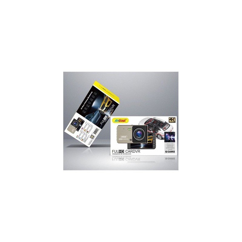 Andowl Cámara de Seguridad, 4K Windshield Car DVR, Display (FDCA992) Code: Q-CA992Cámara DVR para coche Q-CA992 de Andowl, con capacidad de grabación de vídeo a 4K. resolución Se monta en el parabrisas. para una sujeción más estable a las vibraciones del coche. Dispone de una pantalla para un fácil seguimiento de las rutas grabadas. También se alimenta mediante un cable procedente de la toma del mechero del coche.