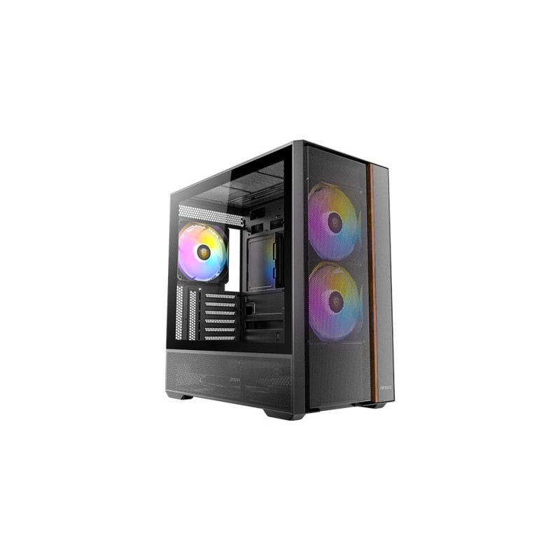 - Midi Tower PC - ATX, ITX, micro ATX - Tamaños de disco duro soportados: 2.5,3.5" - Número de bahías 2.5\'\': 2 Número de puertos 3.5": 1 - Iluminación Multi Panel(es) de vidrio templado Filtro anti-polvo - Acero, Plástico, Madera - Negro
