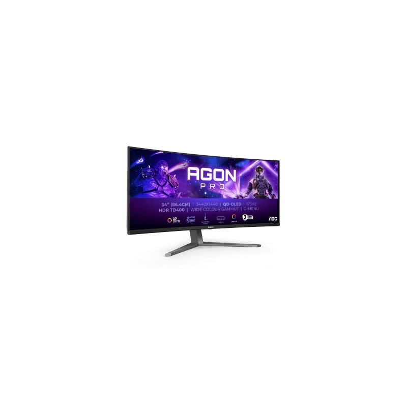 AOC AGON PRO AG346UCD pantalla para PC 86 4 cm (34") 3440 x 1440 Pixeles Wide Quad HD QD-OLED Negro Gris