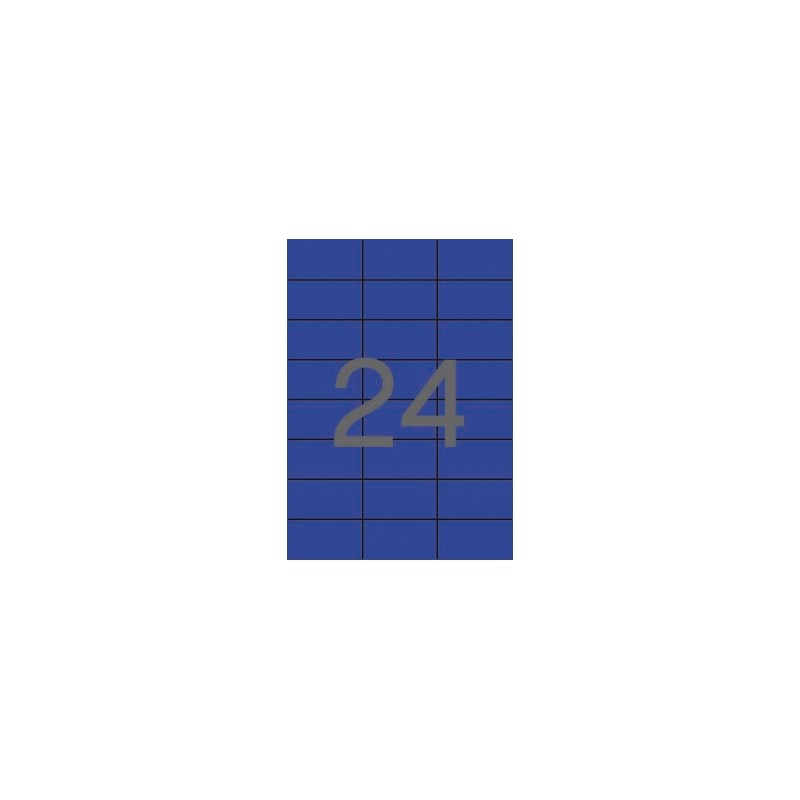 Etiquetas autoadhesivas para impresoras Inkjet, Láser y Fotocopiadoras de color AZUL.Medidas: 70 x 37mmCantidad de etiquetas : 480Cantos: RectosColor: AzulForma: RectangularTipo de adhesivo: PermanenteTamaño de la hoja: Din A4Nº de hojas por pack: 20 HojasLas etiquetas de colores facilitan la identificación y la organización de archivos, envíos, clasificación, etc. Características - A4 - Rectángulo Azul - Tecnología de impresión: Laser/Inyección de tinta - Tipo de adhesivo: Permanente - Etiquetas por paquete: 480 pieza(s) Especificaciones Características Color del producto: Azul Formato: A4 Tecnología de impresión: Laser/Inyección de tinta Tipo de adhesivo: Permanente Forma: Rectángulo Sostenibilidad Certificados de sostenibilidad: Forest Stewardship Council (FSC) Peso y dimensiones Anchura de etiqueta: 7 cm Altura de etiqueta: 3,7 cm Ancho de la hoja: 21 cm Longitud de la hoja: 29,7 cm Empaquetado Cantidad por paquete: 1 pieza(s) Contenido del embalaje Etiquetas por paquete: 480 pieza(s) Hojas de medios por paquete: 20 hojas