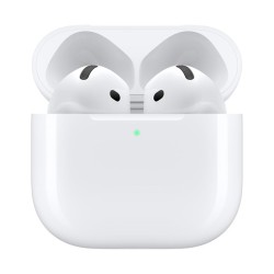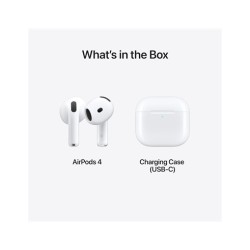 Apple Auriculares inalámbricos AirPods 4, auriculares Bluetooth, audio espacial personalizado, resistente al sudor y al agua, funda de carga USB-C, chip H2, hasta 30 horas de duración de la bateríaMarca AppleColor BlancoColocación en oído IntrauralesFactor de forma IntrauralesImpedancia 32 OhmioReconstruidos para mayor comodidad: los AirPods 4 han sido rediseñados para una comodidad excepcional durante todo el día y una mayor estabilidad. Con un contorno refinado, tallo más corto y controles de presión rápida para música o llamadas.Audio espacial personalizado: audio espacial personalizado con seguimiento dinámico de la cabeza coloca el sonido a tu alrededor, creando una experiencia de escucha similar al cine para música, programas de televisión, películas, juegos y mucho más. *Calidad mejorada de sonido y llamadas: los AirPods 4 cuentan con el chip H2 diseñado por Apple. El aislamiento de voz mejora la calidad de las llamadas telefónicas en condiciones ruidosas. Utilizando audio computacional avanzado, reduce el ruido de fondo mientras aísla y aclara el sonido de su voz para quien esté hablando. *Experiencia mágica: solo di Siri o Hey Siri para reproducir una canción, hacer una llamada o comprobar tu horario. * Y con Siri Interactions, ahora puedes responder a Siri simplemente asintiendo con la cabeza sí o sacudiendo la cabeza no. * Empareja AirPods 4 simplemente colocándolos cerca de tu dispositivo y tocando Conectar en tu pantalla. * Comparte fácilmente una canción o programa entre dos juegos de AirPods. * Un sensor óptico intrauditivo sabe reproducir audio solo cuando llevas AirPods y se detiene cuando los quitas. Y puedes rastrear tus AirPods y estuche de carga con la aplicación Find My. *Batería de larga duración: obtén hasta 5 horas de tiempo de escucha con una sola carga. Y obtén hasta 30 horas de tiempo total de escucha usando el estuche. *Funda rediseñada: la funda de carga viene con capacidades de carga USB-C y es más del 10 por ciento más pequeña en volumen que la generación anterior. *Resistente al polvo, el sudor y el agua: los AirPods 4 y la funda de carga tienen una clasificación IP54 resistente al polvo, el sudor y el agua, por lo que resistirán la lluvia y los entrenamientos pesados. *Detalles técnicosAirPods 4 con cancelación activa de ruidoTamaño y pesoAirPods 4 (cada uno)Altura: 1,19 pulgadas (30,2 mm)Ancho: 0,72 pulgadas (18,3 mm)Profundidad: 0,71 pulgadas (18,1 mm)Peso: 0,15 onzas (4,3 gramos)Estuche de carga (USB-C)Altura: 1,82 pulgadas (46,2 mm)Ancho: 1,97 pulgadas (50,1 mm)Profundidad: 0,83 pulgadas (21,2 mm)Peso: 1,14 onzas (32,3 gramos)Estuche de cargaFunciona con conector USB-C, cargador de Apple Watch o cargadores con certificación Qi.Incluye un altavoz para usar con la vista de proximidad Buscar miBateríaAirPods 4Hasta 4 horas de tiempo de escucha con una sola carga con la cancelación activa de ruido habilitadaHasta 5 horas de tiempo de escucha con una sola carga con el control de ruido desactivadoHasta 4,5 horas de tiempo de conversación con una sola cargaAirPods 4 con cancelación activa de ruido y estuche de carga (USB-C)Hasta 20 horas de tiempo de escucha con la cancelación activa de ruido habilitadaHasta 30 horas de tiempo de escucha con el control de ruido desactivadoHasta 20 horas de tiempo de conversación5 minutos en el estuche proporcionan aproximadamente 1 hora de tiempo de escucha o aproximadamente 45 minutos de tiempo de conversación.Tecnología de audioControlador Apple personalizado de alta excursiónAmplificador de alto rango dinámico personalizadoCancelación activa de ruidoAudio adaptativoModo de transparenciaConciencia de la conversaciónAislamiento de vozAudio espacial personalizado con seguimiento dinámico de la cabezaEcualizador adaptativoSistema de ventilación para igualación de presiónControlesPresione una vez para reproducir o pausar el contenido multimediaPresione una vez para responder una llamada o silenciar o reactivar el sonidoPresione dos veces para finalizar una llamadaPresione dos veces para saltar hacia adelantePresione tres veces para saltar hacia atrásMantenga presionado para SiriDi Hola Siri o simplemente Siri para hacer cosas como reproducir una canción, hacer una llamada u obtener indicaciones.Con Siri Interactions, asiente con la cabeza para decir sí o niega suavemente con la cabeza cuando Siri te pregunte si quieres responder una llamada entrante, escuchar un mensaje de texto, administrar notificaciones y más.SensoresMicrófonos de formación de haz dualMicrófono orientado hacia el interiorSensor óptico intraauricularAcelerómetro de detección de movimientoAcelerómetro de detección de vozSensor de fuerzaChipChip de auriculares H2Resistente al polvo, al sudor y al agua.Resistente al polvo, al sudor y al agua (IP54)ConectividadTecnología inalámbrica Bluetooth 5.3Especificaciones técnicasControl de ruido Aislamiento AcústicoNombre del modelo AirPodsTecnología de conectividad Inalámbrico, bluetoothTecnología de comunicación inalámbrica BluetoothComponentes incluidos (El cable de carga USB-C se vende por separado), AirPods 4, Documentación, Estuche de carga (USB‑C)Rango de edad (descripción) AdultoUsos específicos del producto Condición física, Viaje, VideojuegoUsos Recomendados Para Producto Ciclismo, Ejercicio, Grabar, Llamadas, VideojuegosDispositivos compatibles Computadoras Portátiles, Equipo de Producción de Música, Ordenadores de sobremesa, Tablets, Teléfonos celularesTipo de control SiriCaracterística del cable Sin cableNivel de resistencia al agua Resistente al aguaEstilo Sin cancelación activa de ruidoMétodo de control Táctil, VozNúmero de artículos 1Tipo de controlador BotónVida útil de la batería 5 horasNúmero de serie 3Código postal Único 195949688522Características especiales Aislamiento de ruido, Asistente de voz incorporado, Control táctil, Micrófono incluidoFabricante ManzanaDimensiones del producto 3,25 x 3,2