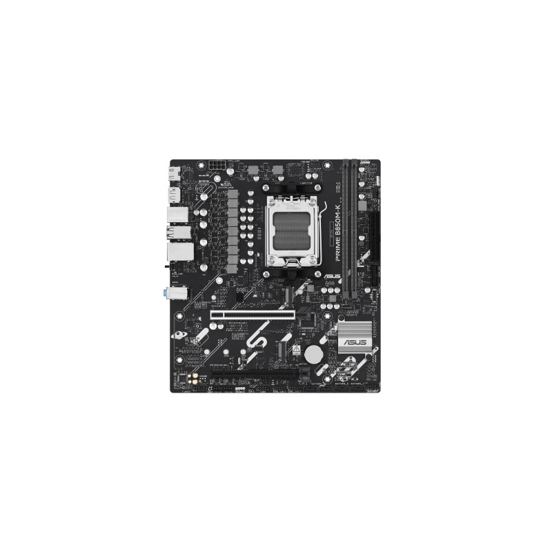La placa base PRIME B850M-K está diseñada con varios disipadores térmicos integrados y una serie de cabezales de ventilador híbridos para garantizar que tu equipo se mantenga fresco y estable bajo cargas de trabajo intensas.