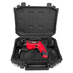 • Atornillador de batería con accesorios.• Velocidad 230 rpm.• Cómoda empuñadura ergonómica.• Par máximo 4.5 Nm.• Luz de trabajo LED.• Incluye 10 puntas, adaptador excéntrico y adptador angular.• Batería de litio de 1.5 Ah.