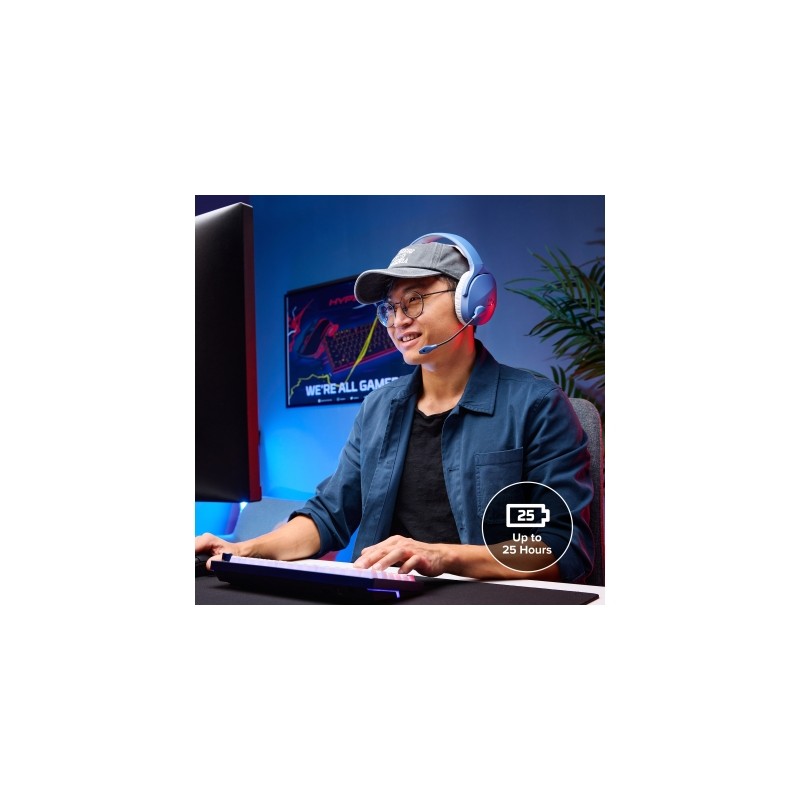 Diseño elegante. Experiencia mejorada.Diseñados tanto para jugadores principiantes como para quienes buscan mejorar su equipo básico, los auriculares inalámbricos duales HyperX Cloud Jet ofrecen una experiencia impecable con conectividad de 2,4 GHz y Bluetooth 5.2. Alterna sin esfuerzo entre ordenador, consola y dispositivos móviles mientras disfrutas del audio enriquecido que ofrecen los transductores de 40 mm para una experiencia de juego inmersiva. Mantén la conexión gracias a un micrófono que se silencia con un simple giro y que garantiza una comunicación clara con tu escuadrón. Con hasta 25 horas de autonomía[1], podrás sumergirte en largas sesiones de juego sin interrupciones. Los controles integrados permiten ajustar el volumen, silenciar el micrófono y alternar entre conexiones con facilidad. Además, su diseño ligero, sus almohadillas de malla transpirable y su diadema con suspensión elástica te ofrecen la máxima comodidad para tus sesiones maratonianas de juego. ¡Mejora tu experiencia de juego con HyperX Cloud Jet!