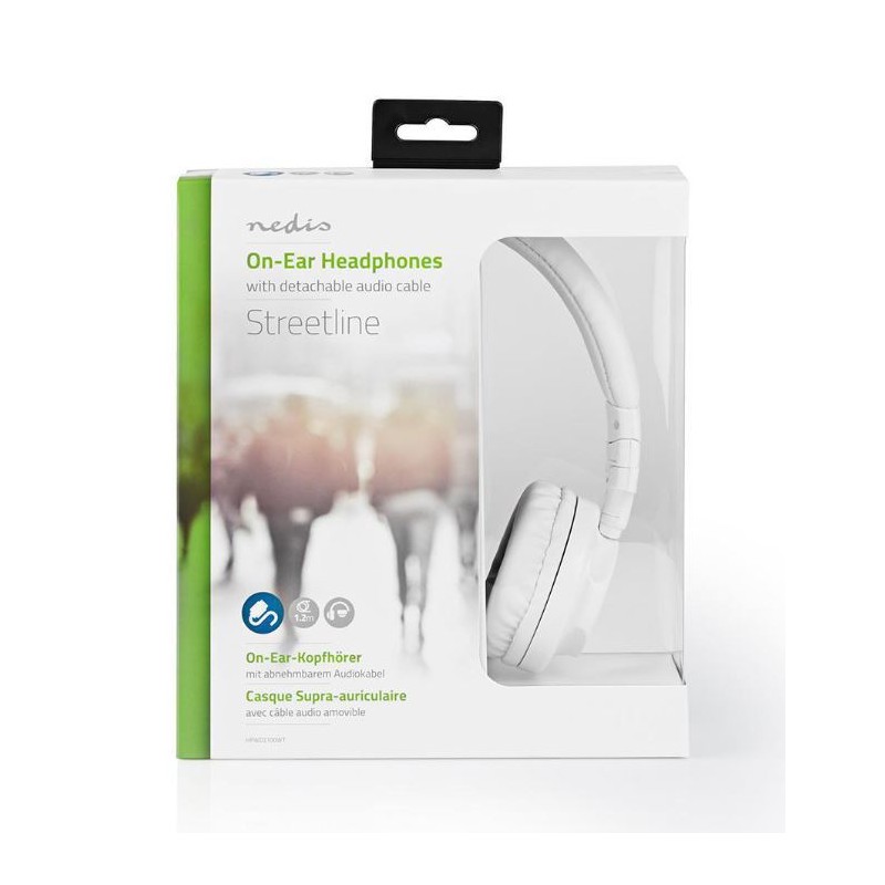 Auriculares con cable y microfono tipo diadema , plegable de color blanco Nedis. Estos auriculares cuentan con una reproducción de sonido nítido, con graves profundos y un diseño compacto y ligero para la mejor experiencia de audio. También cuentan con un sutil acabado de aluminio y un cable extraíble. Jack 3.5mmx2 4pin.