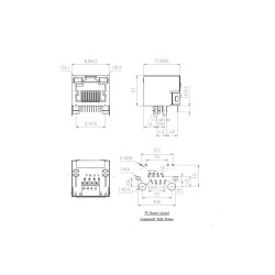Base RJ45 STP 50U" (8P8C) para circuito impreso acodada con LEDs
