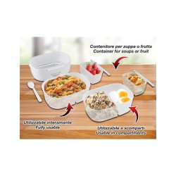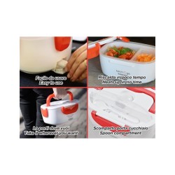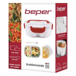 BEPER 90.920R Calentador Eléctrico Portátil de Comida, 2 Recipientes Extraíbles, Cubiertos Incluidos, 220V, RojoColor RojoMaterial PlásticoMarca BEPERUsos recomendados para el producto llevando comidas calientes en la oficina, llevando comidas preparadas para la escuela o el trabajo, y trayendo comidas en picnics o excursiones al aire librellevando comidas calientes en la oficina, llevando comidas preparadas para la escuela o el trabajo, y trayendo comidas en picnics o excursiones al aire libreRango de edad (descripción) AdultoFunción especial Calentador de alimentos eléctrico portátilCapacidad 1 LitrosPatrón SólidoCuidado de la prenda Contenedores extraíbles para facilitar la limpieza: se recomienda lavar a mano o en lavavajillasComponentes incluidos bolsaLONCHERA GRANDE: La lonchera Beper tiene 2 recipientes, uno grande de 1000 ml (1l) y otro pequeño de 450 ml (con tapa)COMODIDAD: Fiambrera diseñada para transportarla cómodamente todos los días (1 kg vacía) Fiambrera con asa y compartimento para cubiertosSIEMPRE LIMPIA: Siempre limpia gracias a la placa calefactora desmontable y a los recipientes aptos para lavavajillasNUNCA MÁS COMIDA FRÍA: En la oficina, en el trabajo, en la escuela. disfruta de la comida caliente y olvídate del microondas, enchufe europeo (2 clavijaMATERIAL SEGURO: El recipiente interior es de plástico ABS de alta calidad, no emite olores peculiares al calentarse y no emite sustancias nocivas a altas temperaturasCalentador de alimentos eléctrico Luch &, Go¡Para estropear tu comida caliente dondequiera que estés!Calentador eléctrico que calienta el almuerzo o la cena rápidamente, haciendo olvidar el microondas, su diseño lo hace perfecto para ser llevado a la oficina, a la escuela o a los picnics.Qué incluye:2 cajas de plástico extraíblesUn recipiente grande de 1000 mlUn pequeño recipiente de 450 mlTapa con cubiertos incluidosPlaca calefactora de aceroLuz de funcionamientoPráctico asa para el transporteFácil de limpiarEl calentador está hecho de ABS y la placa calefactora se separa cómodamente del cuerpo principal, se limpia fácilmente porque los contenedores son extraíbles y lavables a mano o en lavavajillas.Compartimento doble2 envases extraíbles de plástico: un contenedor grande de 1000 ml (1l) y un pequeño contenedor de 450 ml (con tapa). 2 compartimentos ideales para separar 2 platos diferentes.Prepara tu almuerzo idealPuedes calentar la pasta, la carne y las verduras, e insertar la fruta en el recipiente extraíble. El tiempo de calentamiento depende del tipo, la cantidad y la temperatura inicial de los alimentos.ErgonómicoDiseñado para ser transportado cómodamente cada día, de hecho pesa menos de 1 kg en vacío, la caja está equipada con manilla y un compartimento portacubiertos y la tapa está equipada con ganchos de cierre.