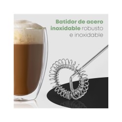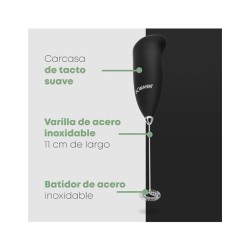 Bomann MS 344 Espumador de Leche, Funciona con 2 Pilas AA, Acero Inoxidable, NegroMarca BomannColor NegroMaterial Aleación de aceroDimensiones del producto 40an. x 55al. milímetrosUsos recomendados para el producto FoamNombre del modelo Ms344Componentes incluidos Plunger, LidPeso del producto 100 GramosCuidado del producto NoCapacidad 1 LitrosFuncionamiento con pilas: 2 x 1,5 V AA UM3 (no incluidas)Crea espuma de leche en segundos.Funda soft touch para un tacto suave, sensación aterciopelada muy agradableBatidor de acero inoxidable resistente a la corrosiónFácil de limpiarMarca ‎BomannNúmero de modelo ‎MS 344 CBColor ‎NegroDimensiones del producto ‎4 x 4 x 5,5 cm, 100 gCapacidad ‎1 LitrosPotencia ‎3600Voltaje ‎220Material ‎Aleación de aceroDispositivos compatibles ‎Espumador de lechePeso del producto ‎100 g¿Eres fanático del café con leche frío, del chocolate frío o de muchas otras bebidas de moda? El espumador de leche Bomann es una forma sencilla, rápida y limpia de obtener una espuma de leche perfecta y de consistencia fina y ligera. Para usarlo, simplemente vierte la leche en un recipiente y acciona el émbolo durante unos segundos. Después de algunos movimientos se forma espuma de leche. Obtendrás una espuma muy cremosa para todo tipo de bebidas.
