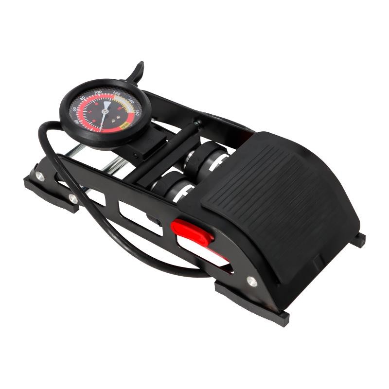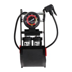 • Bomba de inflado doble sistema con manómetro.• Adecuada para inflar los neumáticos de todo tipo de bicicletas, motocicletas, coches, camiones, bañeras inflables, entre otros.• Diseño antideslizante del pedal para evitar resbalones durante el bombeo.• Presión máxoma 120 PSI.• Apto para uso interior y exterior.• Ligero y fácil de usar.