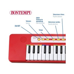COLORBABY Teclado para niños, 32 Teclas, Mide 47x3,5x13 cm, 2 Sonidos, 8 ritmos, 8 Demos, Aprender a Tocar el Piano, Teclados Infantiles, Instrumentos Musicales, Juguetes educativos 3 años (47887)Color RojoTamaño 47x3,5x13 cmMarca ColorBabyDimensiones del producto: largo x ancho x alto 40 x 480 x 140 milímetrosRango de edad (descripción) InfantDescripción de la pila AlcalinaInstrumento Electronic KeyboardNúmero de teclas 32Número de ajustes 3Edad mínima según el fabricante (MESES) 36Edad: teclado para niñas y niños recomendado a partir de 3 añosAprende a tocar melodías con el teclado electrónico de 32 teclas Bontempi, mide 47x3,5x13 cm y sigue el método musical 7 notas, 7 colores, incorpora toma para adaptador de red (no incluido) o para cable USB-DC (incluido) para conectarse a un banco de energía, PC o móvil (no incluidos)Funciones: control de volumen y tempo, grabación y reproducción, botones on/off, stop, función de aprendizaje OKON y selector de demos, ritmos y sonidos, funciona con 4 pilas AA (no incluidas)Sonidos y melodías: el teclado infantil incorpora 2 sonidos, 8 ritmos y 8 piezas pregrabadasValores: teclado portátil que favorece la estimulación sensorial y desarrolla la habilidad manual, la coordinación ojo-mano y la creatividadDimensiones del producto 4 x 48 x 14 cm, 410 gEdad recomendada por el fabricante 3 años y másValor educativo Introducir a los niños en el mundo de la música, desarrollar su percepción auditiva, mejorar su habilidad manual y coordinación ojo-mano, y potenciar su creatividad.Número de modelo 47887Montaje necesario NoNecesita baterías SíIncluye baterías NoTipo de Batería(s) / Pila(s) AlcalinaPeso del producto 410 gSaca al músico que llevas dentro al frente de este teclado infantil Bontempi. En qué consiste: descubre lo divertido que es tocar este teclado infantil Bontempi. Con 32 teclas y una variedad de sonidos, ritmos y melodías para que los más pequeños de la casa exploren la música de manera fácil y divertida. Este teclado les ayudará a familiarizarse con diferentes sonidos y a desarrollar su oído musical mientras juegan. La forma más entretenida de despertar su creatividad y pasión por la música. Qué incluye: el teclado electrónico cuenta con 2 sonidos, 8 ritmos y 8 canciones pregrabadas. Tiene botón on/off, stop y permite grabar y escuchar tus propias composiciones, controlar el volumen y el tempo, y seleccionar demos, sonidos y ritmos. Con la función de aprendizaje OKON (One Key One Note), es fácil tocar las canciones de demostración pulsando cualquier tecla. Todo lo que necesitas para sacar al músico que llevas dentro. Qué aprenden: los teclados musicales para niños son una herramienta para introducirles en el mundo de la música de forma divertida. Al experimentar con diferentes sonidos, ritmos y melodías, se estimula su percepción auditiva y se favorece la estimulación sensorial. La interacción con las teclas mejora su habilidad manual y coordinación ojo-mano, ya que aprenden a sincronizar lo que ven con el movimiento de sus manos. Asimismo, al contar con la opción de grabación y reproducción, los niños pueden componer sus propias canciones, lo que potencia enormemente su creatividad. Qué debes saber: este piano para niños está recomendado a partir de 3 años y funciona con 4 pilas AA (no incluidas) o a través de una fuente de alimentación con adaptador de red (no incluido) o cable USB-DC (incluido) para conectarse a un banco de energía, PC o móvil (no incluidos). En la parte trasera de la caja se incluyen 2 canciones para interpretar fácilmente siguiendo el método 7 notas, 7 colores. Incluye manual de instrucciones.Advertencia de seguridad¡ADVERTENCIAS!:* SI EL JUGUETE ES PARA MENORES DE 3 AÑOS SIN PILAS: CONVIENE GUARDAR ESTAS INFORMACIONES. RETIRE EL EMBALAJE Y LOS SOPORTES ANTES DE DAR EL JUGUETE AL NIÑO.* SI EL JUGUETE ES PARA MENORES DE 3 AÑOS Y FUNCIONA CON PILAS: LAS BATERÍAS NO RECARGABLES NO HAN DE SER RECARGADAS. LAS BATERÍAS RECARGABLES SÓLO HAN DE SER CARGADAS BAJO LA SUPERVISIÓN DE UN ADULTO. LAS BATERÍAS RECARGABLES HAN DE SER RETIRADAS DEL JUGUETE ANTES DE SER CARGADAS. UTILIZAR SÓLO LAS PILAS INDICADAS. NO HAN DE MEZCLARSE DIFERENTES TIPOS DE BATERÍAS, O BATERÍAS NUEVAS Y USADAS. LAS BATERÍAS HAN DE SER INSERTADAS CON LA POLARIDAD CORRECTA (+/-). LOS BORDES DE ALIMENTACIÓN NO HAN DE SER CORTOCIRCUITADOS. LAS BATERÍAS AGOTADAS HAN DE SER RETIRADAS DEL JUGUETE. RETIRAR LAS PILAS DEL APARATO CUANDO ÉSTE NO SE UTILICE.* SI EL JUGUETE ES PARA MAYORES DE 3 AÑOS SIN PILAS: NO CONVIENE PARA NIÑOS MENORES DE 36 MESES. PIEZAS PEQUEÑAS. PELIGRO DE ASFIXIA.* SI EL JUGUETE ES PARA MAYORES DE 3 AÑOS Y FUNCIONA CON PILAS: NO CONVIENE PARA NIÑOS MENORES DE 36 MESES. PIEZAS PEQUEÑAS. PELIGRO DE ASFIXIA. LAS BATERÍAS NO RECARGABLES NO HAN DE SER RECARGADAS. LAS BATERÍAS RECARGABLES SÓLO HAN DE SER CARGADAS BAJO LA SUPERVISIÓN DE UN ADULTO. LAS BATERÍAS RECARGABLES HAN DE SER RETIRADAS DEL JUGUETE ANTES DE SER CARGADAS. UTILIZAR SÓLO LAS PILAS INDICADAS. NO HAN DE MEZCLARSE DIFERENTES TIPOS DE BATERÍAS, O BATERÍAS NUEVAS Y USADAS. LAS BATERÍAS HAN DE SER INSERTADAS CON LA POLARIDAD CORRECTA (+/-). LOS BORDES DE ALIMENTACIÓN NO HAN DE SER CORTOCIRCUITADOS. LAS BATERÍAS AGOTADAS HAN DE SER RETIRADAS DEL JUGUETE. RETIRAR LAS PILAS DEL APARATO CUANDO ÉSTE NO SE UTILICE. CONVIENE GUARDAR ESTAS INFORMACIONES. RETIRE EL EMBALAJE Y LOS SOPORTES ANTES DE DAR EL JUGUETE AL NIÑO.*** PARA MÁS DETALLE DE ADVERTENCIAS, VERIFIQUE EN EL PRODUCTO LAS ADVERTENCIAS ADICIONALES, REVISE LAS FOTOS DE ETIQUETADO ADJUNTAS Y EL MANUAL DE INSTRUCCIONES DEL JUGUETE.