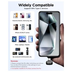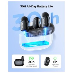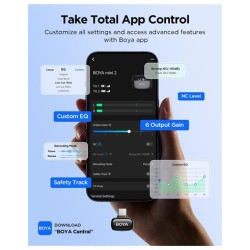 BOYA Mini 2 micrófono inalámbrico Lavalier con cancelación de ruido AI, control de aplicación, estuche de carga de batería de 30 horas - para iPhone 15/16/17 y Android, video, podcasts, vloggingMarca BOYATecnología de conectividad inalámbricoTipo de conector USB Tipo-CCaracterísticas especiales Función de silencio, Grabación de 1 toque, Luz indicadora de batería, Reducción de ruidoDispositivos compatibles Cámara, Smartphone, TabletColor NegroComponentes incluidos 2* TX+1* RX+1* CCFuente de alimentación BateríaMaterial MetalRelación señal a ruido 80 dBComodidad ligera y discreta: con un peso de solo 0.18 oz, el BOYA Mini 2 es nuestro micrófono de clip más ligero. Su diseño aerodinámico se esconde perfectamente en la ropa, ofreciendo comodidad durante todo el día y un aspecto limpio y profesional para tus videosCancelación avanzada de ruido AI: garantiza una grabación de voz nítida en cualquier lugar. Nuestra tecnología de IA adaptativa suprime instantáneamente el ruido de fondo. Elija el modo Fuerte (-40 dB) para entornos ruidosos o el modo Light (-15 dB) para preservar el sonido ambiental naturalControl inteligente de aplicaciones y audio mejorado: toma el mando completo con la aplicación gratuita BOYA Central. Ajusta fácilmente la ganancia, la configuración de cancelación de ruido y los ajustes preestablecidos de ecualización directamente desde tu teléfono. Captura sonido con calidad de transmisión con resolución de 48 kHz/24 bits y un amplio manejo SPL de 120 dBLimitador y pista de seguridad para audio impecable: graba con confianza. El limitador integrado evita la distorsión ajustando el volumen en tiempo real, mientras que la pista de seguridad separada de -12 dB actúa como una copia de seguridad para proteger contra recortes, asegurando que tu audio esté siempre claro y protegidoPotencia de 30 horas y rango extendido de 328.1 ft: disfruta de la máxima libertad con hasta 30 horas de duración de la batería desde el estuche de carga portátil. Experimenta una conexión inalámbrica estable a una distancia de hasta 328.1 ft, lo que te da la flexibilidad de moverte y grabar sin interrupciones