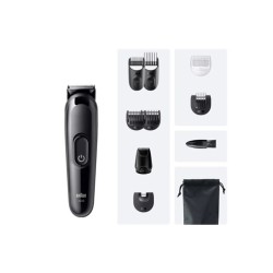 Afeitadora Multifunciones BRAUN Series 3 AIO3560 10-en-1 Para Barba, Cabello y CuerpoKit de cuidado personal Braun Todo en Uno para hombre. El kit de herramientas 10 en 1 te permite recortarte fácilmente la cara y el pelo. Consigue precisión y eficacia cómodamente en un abrir y cerrar de ojos con la cuchilla ultra afilada. Mantén el control total del aseo personal con 14 ajustes de longitud. Incluye cabezales y peines lavables y un cepillo de limpieza para una limpieza rápida y sin esfuerzo. Braun AIO Series 3, fabricada para durar, autonomía de 50 minutos.Contenido de la caja: 1 recortadora, 7 peines, 1 accesorio, 1 cepillo de limpieza, 1 funda.Características técnicasEAN 7500435245098Marca BRAUNModelo AIO 3560Características físicasColor NegroCaracterísticas específicasLavable No