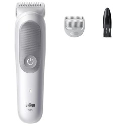 Braun Cortacésped para el cuerpo Series 5, + 2 herramientas de afeitado, con cuchilla SkinGuard, autonomía de 100 min, suave para zonas sensibles, cortar, afeitarse sus pelos con accesoriosMarca BraunUsos recomendados para el producto CuerpoFunción especial Impermeable, Inalámbrico, Tecnología SkinGuardFuente de alimentación BateríaNombre del modelo Série 5Duración de la batería 100 MinutosPeso del producto 196 GramosColor GrisMaterial de la cuchilla Acero inoxidableTipo de cabeza LáminasCorte y afeitado suave: el cortacésped Braun Series 5 es cómodo para la piel, incluso en zonas sensiblesSuave y cómodo para la piel: el cabezal extraíble SmoothShave ofrece una excelente comodidad para la piel y una mayor eficiencia (en comparación con las cortadoras anteriores de Braun)Máxima seguridad para la piel: diseñado con la tecnología SkinGuard para reducir el riesgo de cortes y cortes para un afeitado seguro en todas las zonasSuave incluso en zonas sensibles: un zueco para zonas sensibles evita que la hoja toque con la pielUso de larga duración: 100% impermeable, tiene un mango antideslizante AquaGrip para un control perfecto incluso en la ducha. Dispone de una potente batería de iones de litio para una duración de 100 minutosLa cortadora corporal de Braun para hombres, suave y protege la piel sensible. Obtenga afeitados suaves con mayor eficiencia y comodidad en comparación con las cortadoras Braun anteriores. Esta cortadora corporal reduce el riesgo de cortes y cortes gracias a la tecnología SkinGuard. Permite afeitarse y cortar sus pelos en cualquier lugar, incluso en la ducha gracias al mango AquaGrip. La zapata para zonas sensibles garantiza un afeitado seguro y cómodo evitando el contacto directo con la cuchilla. Contenido del paquete: 1 body groomer1 zapata y 1 cepillo de limpiezaAdvertencia de seguridadAtención: Evite el contacto con los ojos. No usar en bebés. Mantenga el dispositivo alejado del agua cuando no esté en uso.Dimensiones del paquete 25 x 10.6 x 6.2 centímetrosDimensiones del producto: largo x ancho x alto 10.5 x 6 x 25.2 centímetrosPeso del producto 196 GramosMarca BraunColor GrisPúblico de destino HombresOtras características Impermeable, Inalámbrico, Tecnología SkinGuardFabricante PROCTER &, GAMBLE FRANCENúmero de modelo del producto BG5500Dimensiones del producto 10,5 x 6 x 25,2 cm, 196 gASIN B0DQWPX3HK