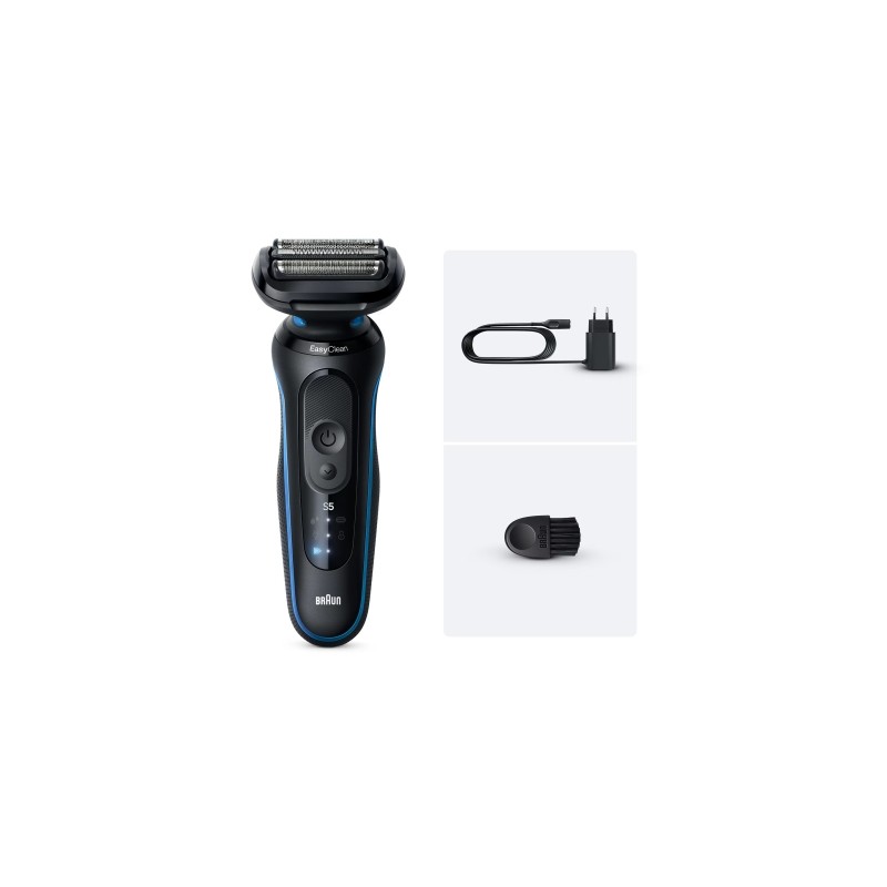 Braun Series 5 ofrece un afeitado fácil y rápido que es suave con la piel. Eficiente incluso en barbas duras.3 hojas flexibles que se adaptan a los contornos de la cara cómodamente.Modo turbo para un afeitado rápido con hasta 25 500 acciones de corte por segundo.Modo estándar, equilibrio óptimo para un afeitado rápido y suave.La Series 5, fabricada en Alemania, se ha diseñado para su uso en seco y en mojado. Diseñada para una durabilidad a largo plazo, incluye una batería de iones de litio que proporciona hasta 50 minutos de funcionamiento con una carga rápida de 5 minutos.