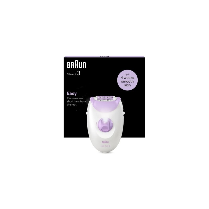 Características Braun Silk-épil 3 3-000 20 pinzas Púrpura, Blanco Especificaciones Características Color del producto: Púrpura, Blanco Número de pinzas: 20 pinzas Afeitadora: No Recortadora: No Tecnología de las pinzas: MicroGrip Adecuado para el pelo corto: Si Refrigeración: No Luz integrada: Si Número de velocidades: 2 Cabezal de corte para bikini: No Control de energía Fuente de energía: Corriente alterna Voltaje de entrada AC: 100 - 240 V Frecuencia de entrada AC: 50 - 60 Hz Otras características País de origen: Alemania Epiladora: Si Peso y dimensiones Ancho: 118 mm Profundidad: 57 mm Altura: 142 mm Peso: 286 g Contenido del embalaje Cepillo de limpieza: Si Adaptador AC incluido: Si Empaquetado Tipo de embalaje: Caja Ancho del paquete: 165 mm Profundidad del paquete: 235 mm Altura del paquete: 80 mm Peso del paquete: 346 g Datos logísticos Cantidad por paquete: 1 pieza(s) Detalles técnicos Cabezal de masaje: Si