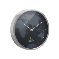 Reloj de Pared de 30 cm National GeographicEl reloj de pared NATIONAL GEOGRAPHIC con su marco de aluminio pulido y su discreto mapamundi en negro o gris colocado en la esfera otorgan a su hogar una discreta elegancia.Gracias a su mecanismo silencioso puede colocarse también en el dormitorio.Fabricante/Marca National GeographicAncho 30Peso 0,967Alto 4,5Especificaciones técnicas y caracterísitcas:- Reloj de pared con ajuste horario manual- Armazón de aluminio pulido- Esfera sin números con división de horas y minutos- Mecanismo silenciosoColores NegroEAN 4007922038759