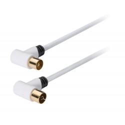 Cable coaxial macho en ángulo de 100 dB a hembra en ángulo de 3,00 m en blanco. Cable de conexión de un decodificador a una toma coaxial de pared para recibir señales de TV y radio. Apantallamiento doble que aumenta la reducción de las interferencias electromagnéticas Núcleo de ferrita para la reducción de interferencias