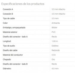 Cable audio Jack 3,5 estereo Nedis 1mts.Cable de conexión de smartphone o tableta a un equipo de cine en casa o de audio de coche para disfrutar de un excepcional sonido estéreo.