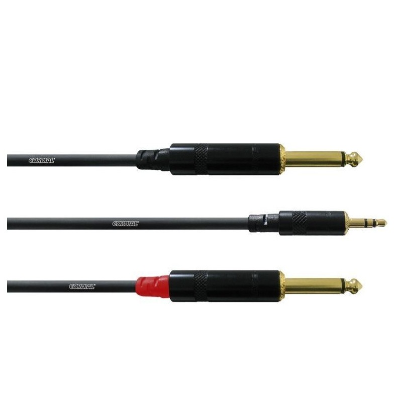 Cable Jack 3,5 st - 2 x Jack 6,3 mm mono long. 1,5 metros CFY 1,5 WPP. Cables y adaptadores y Fair Line.