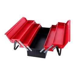 • Caja de herramientas portátil de metal.• Dos capas con cuatro bandejas y un compartimiento inferior.• Permite colocar un candado (no incluido).• Tapa abatible, fácil apertura.• Asa doble para facilitar su transporte.• Resistente y duradera.