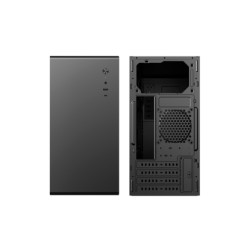 Chasis Micro ATX de color negro fabricado en acero SPCC de 0.6mm.