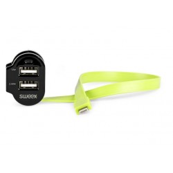 Cargador de Coche 3-Salidas 6 A Sweex , 2 salidas USB+1 salida Lightning.Cuenta con un cable Lightning integrado de 26 cm con diseño plano y ofrece un almacenamiento inteligente. Olvídese por completo de los enredos y la desorganización de cables, y ahorre tiempo y molestias. Además, el cargador para el coche admite la carga simultánea de tres dispositivos, como cámaras, iPads y sistemas de navegación, con una corriente máxima de 6 A (1x Lightning y 2x USB).