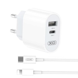 CARGADOR RAPIDO TIPO C + USB + LIGHTNING BLANCO XO