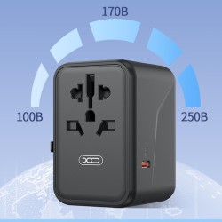 CARGADOR UNIVERSAL DE VIAJE 3 X TIPO C + 2 X USB 65W NEGRO XO