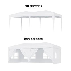 • Carpa plegable de 3x6 metros.• Se puede instalar con paredes o sin paredes.• Estructura de metal.• Tejido poliéster 210D impermeable.• Seis paredes, cuatro de ellas con ventanas+dos con cremallera.• Incluye bolsa de transporte.