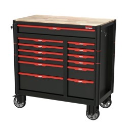• Contiene 360 pcs herramientas.• 12 cajones.• Encimera de madera, se puede usar como banco de trabajo móvil.• Cajones con guías reforzadas.• Ruedas robustas.• Mecanismo de bloqueo individual en cada cajón.