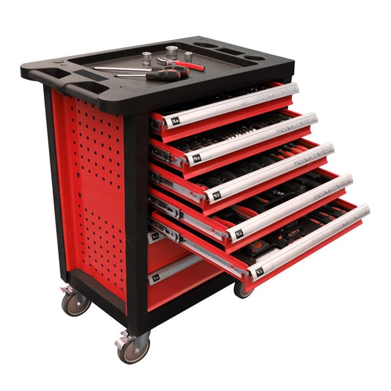 • Contiene 184 pcs herramientas• 7 cajones• 1/4 Mango de trinquete ¼ • Socket 4-4.5-5-5.5-6-7-8-9-10-11-12-13-14 mm • 1/4 Mango giratorio 150mm • 1/4 Barra T deslizante • 1/4 Barra de extensión de 2" • 1/4 Barra de extensión de 4" • 1/4 Junta universal • 3/8 Mango de trinquete 3/8Dr.Socket 8-9-10-11-12-13-14-15-16-17-18-19-21-22-24 mm • 3/8 Barra T deslizante • 3/8 Barra de extensión de 3" • 3/8 Barra de extensión de 6" • 3/8 Junta universal • 1/2 Mango de trinquete • 1/2 Socket 10-11-12-13-14-15-16-17-18-19-21-22-23-24-27-30-32 mm • 1/2 Barra T deslizante • 1/2 Barra de extensión de 5" • 1/2 Barra de extensión de 10" • 1/2 Junta universal • Llave de caja o set 6x7, 8x9, 10x11, 12x13, 14x15, 16x17, 18x19, 20x22 mm • Llave combinada 6-7-8-9-10-11-12-13-14-15-16-17-18-19-20-21-22 mm • Vasos de puntas T8-10-15-20-25-30-40, H3-4-5-6-7-8, PH1-2-3, PZ1-2-3, SL3-4-5-6 • Llave hexagonal tipo largo 1.5-2-2.5-3-4-5-6-8-10 mm • 3/8 Socket 4-5-6-7-8-9-10-11-12 mm • Destornillador (-)6x38, 3x75, 4x100, 5x100, 6X150, 8X200 mm • Destornillador (+)PH2x38, PH0x75, PH1x100, PH2x100, PH2x150, PH3x200 • Destornillador aislado (-)3X75, 4X100, 5.5X125, (+)PH0X75, PH1X100, PH2X100 • Destornillador de precisión (-)2.0X40, 2.4X40, 3.0X40, (+)PH000X40, PH00X40, PH0X40 • Llave hexagonal T9-10-15-20-25-27-30-40 • Sierra para metales • Nivel Cinta métrica 3 m • Regla cuadrada 25 cm • Regla plegable 2 m • Destornillador tipo T 2x100, 2.5x100, 3x100, 4x150, 5x150, 6x150 mm • Alicate combinado 6" • Alicate de punta larga 6" • Alicate diagonal 6" • Alicate doblado 6" • Alicate para bomba de agua • 10" Alicate de bloqueo • 10" Martillo de ladrillo • Martillo de 2 vías
