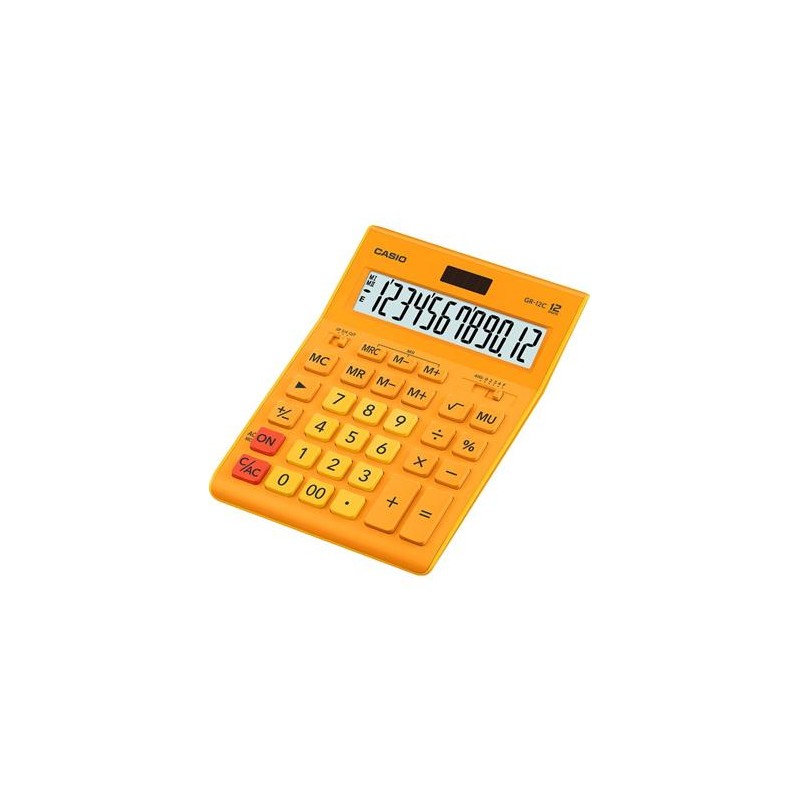 Calculadora sobremesa GR-12C Casio naranjaDimensiones: 20,9 (ancho) x 3,5 (fondo) x 15,5 (alto) cmPeso: 304 gCalculadora sobremesa GR-12C Casio naranja.FUNCIONES DE CÁLCULOPorcentajeRaíz cuadradaDoble memoriaMarcadores de coma 3 dígitosCambio de signo (+/-)Función Marcar hacia arribaSelector de redondeo (0,2,3,4,ADD2)Redondeo automático F, CUT, UP, 5/4Tecla de retrocesoTecla doble cero