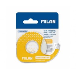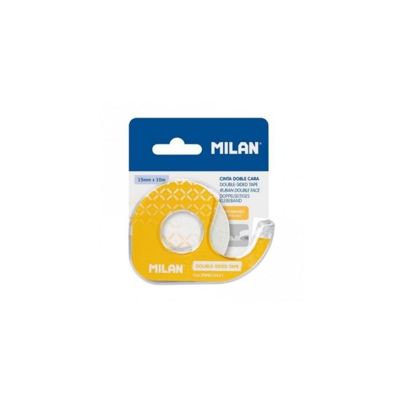 CINTA ADHESIVA DOBLE CARA MILAN EN PORTARROLLOS 15MM X 10M HOJA DE CORTE METALICA DISPENSADOR RECARGABLE AMARILLO BWM10421