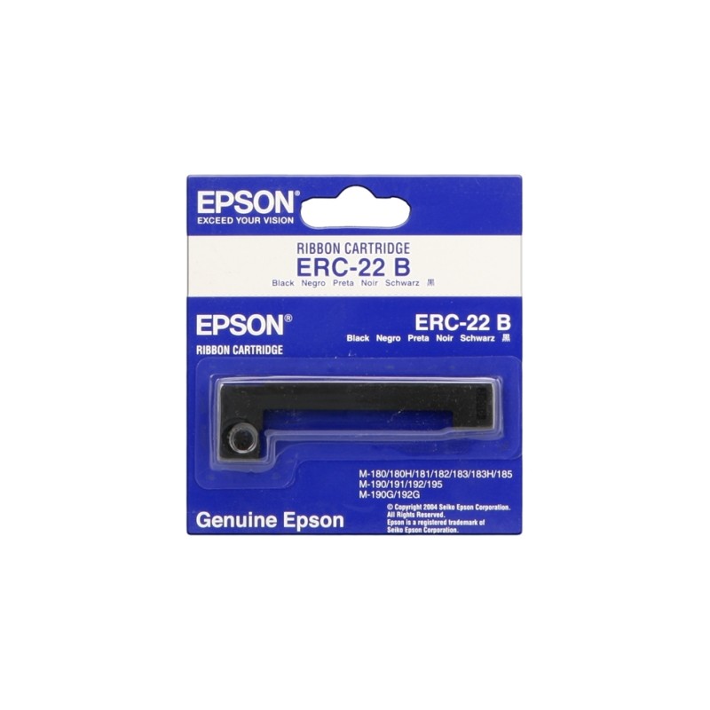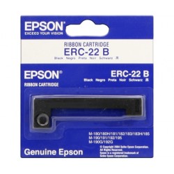 Descripción técnica Cartucho Epson ERC22B para las series M-180/190, larga duración, negro   Desempeño Productos compatibles Epson M180/182/183/185/190/191/192/195