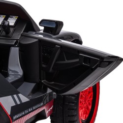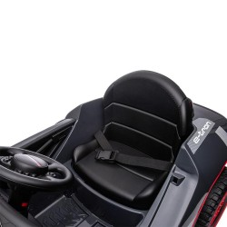 • Audi RS E-TRON de batería para niño/as.• Encendido con botón.• Acelerador de pedal en el pie.• Efectos de sonido.• Entrada USB/AUX.• Cinturón de seguridad.• Apertura de puertas.• Adecuado para niños de +3 años.• Control remoto.• Batería: 12V 7A 35W X2.• Velocidad máxima: 5 km/h.• Certificación CE y cumple con la normativa europeasobre juguetes: EMC, EN71-1-2-3, EN62115.