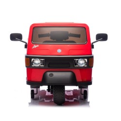 • Piaggio Ape de batería para niño/as.• Encendido con botón.• Acelerador de pedal en el pie.• Efectos de sonido.• Entrada USB/AUX.• Cinturón de seguridad.• Apertura de puertas.• Adecuado para niños de +3 años.• Control remoto.• Batería: 12V 4.5A 25W X2.• Velocidad máxima: 5.4 km/h.• Certificación CE y cumple con la normativa europeasobre juguetes: EMC, EN71-1-2-3, EN62115.