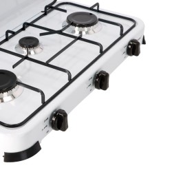 • Cocina de gas portátil con 3 quemadores.• Tapa protectora extraíble que puede usarse como cortavientos.• Rejilla esmaltada para una fácil limpieza.• Carcasa exterior esmaltada resistente a la corrosión.• Medidas: 57.7x27.8x5.3 cm (An x L x Al).