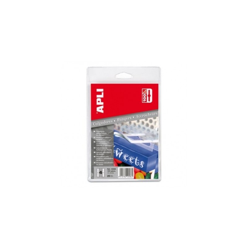 DESCRIPCIÓN DEL PRODUCTOS Especificaciones técnicas Pack 100 Colgadores autoadhesivos 34 x 48mm Transparentes Utilícelos para dotar a sus productos de colgadores con los que los podrá colocar en expositores y demás soportes.