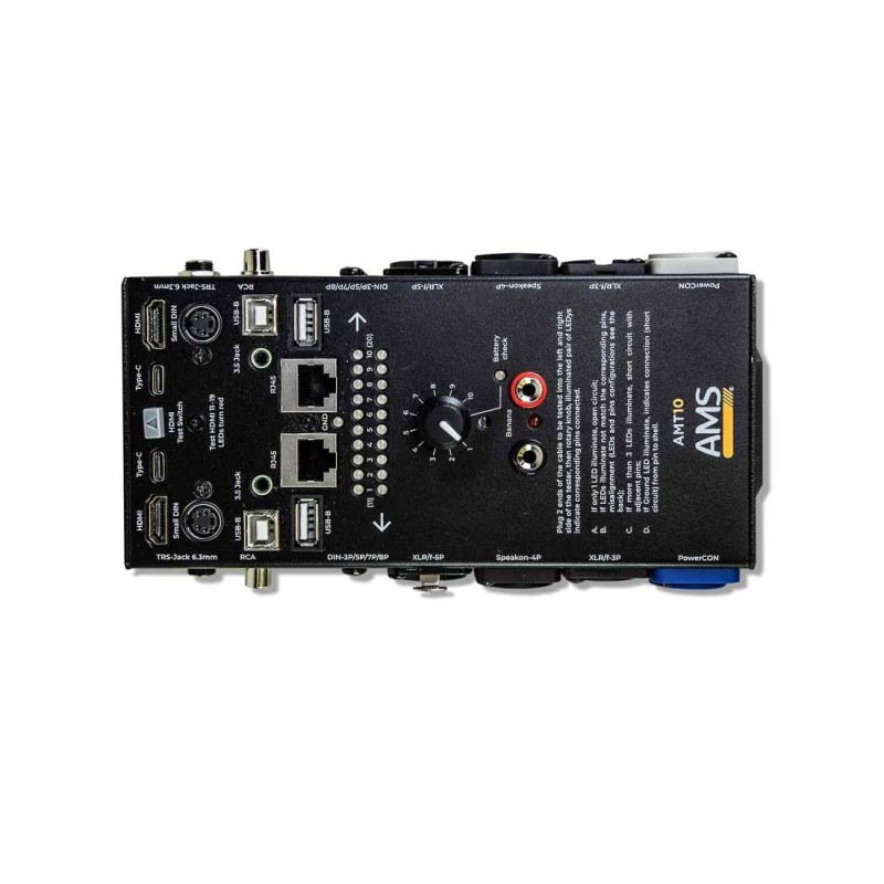 Comprobador de cables multifunción Comprobador de cables multifunción permite el testeo de cableado HDMI, USB-C, Small DIN, USB-A, USB-B, 3.5 Jack, 6.3 TRS Jack, RJ45, BANANA, RCA, DIN 3P/5P/7P/8P, XLR 3, XLR 5, Speakon 4P, PowerCON. Funciona con pila de 9V. Características- Testeo de cableado- HDMI, USB-C, Small DIN, USB-A, USB-B, 3.5 Jack, 6.3 TRS Jack, RJ45, BANANA, RCA, DIN 3P/5P/7P/8P, XLR 3, XLR 5, Speakon 4P, PowerCON- Alimentación con pila 9V