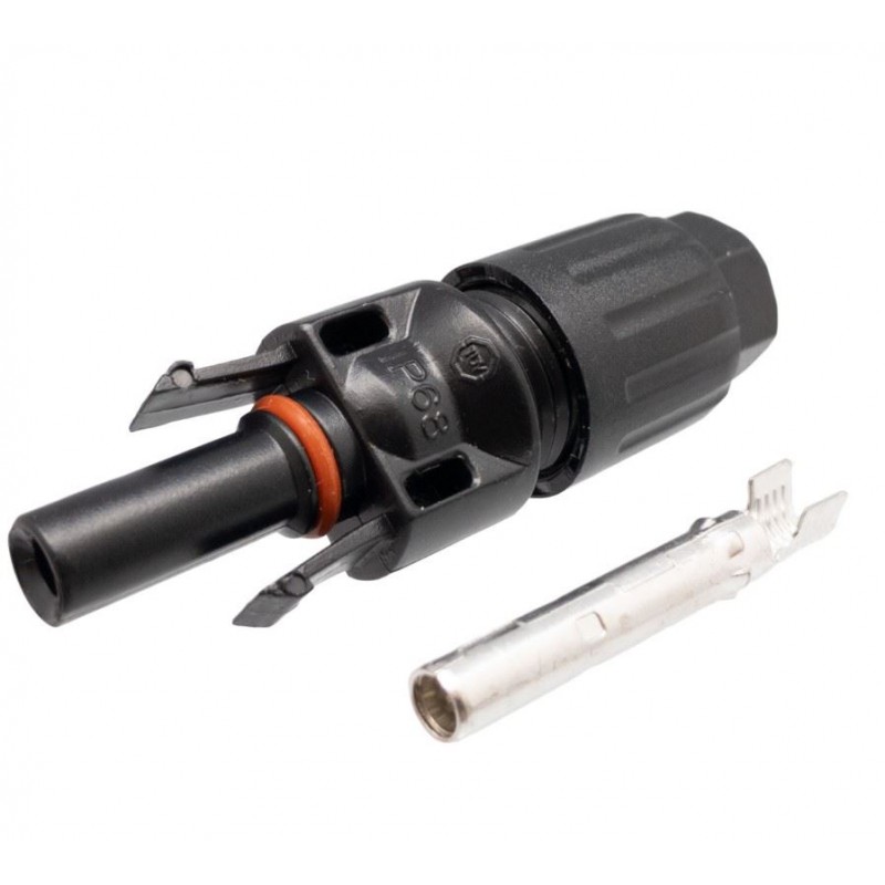 Conector hembra, Aerea en PPO/PA. Conector Multi-Cotact 4 para placas solares. Color Negro. Para crimpado de cables de 2,5, 4,0 y 6,0mm.