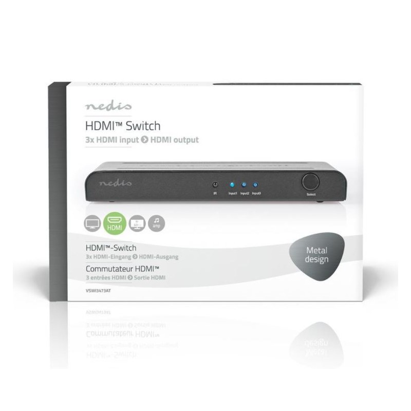 Conmutador HDMI 3 entradas y 1 salida con mando a distancia, resolucion max 4K@60Hz de NEDIS.Conecte hasta 3 fuentes Ultra HD HDMI a una única pantalla.Compatible con Ultra HD 4K2K a 60 Hz y 3D Compatible con HDCP 2.2.