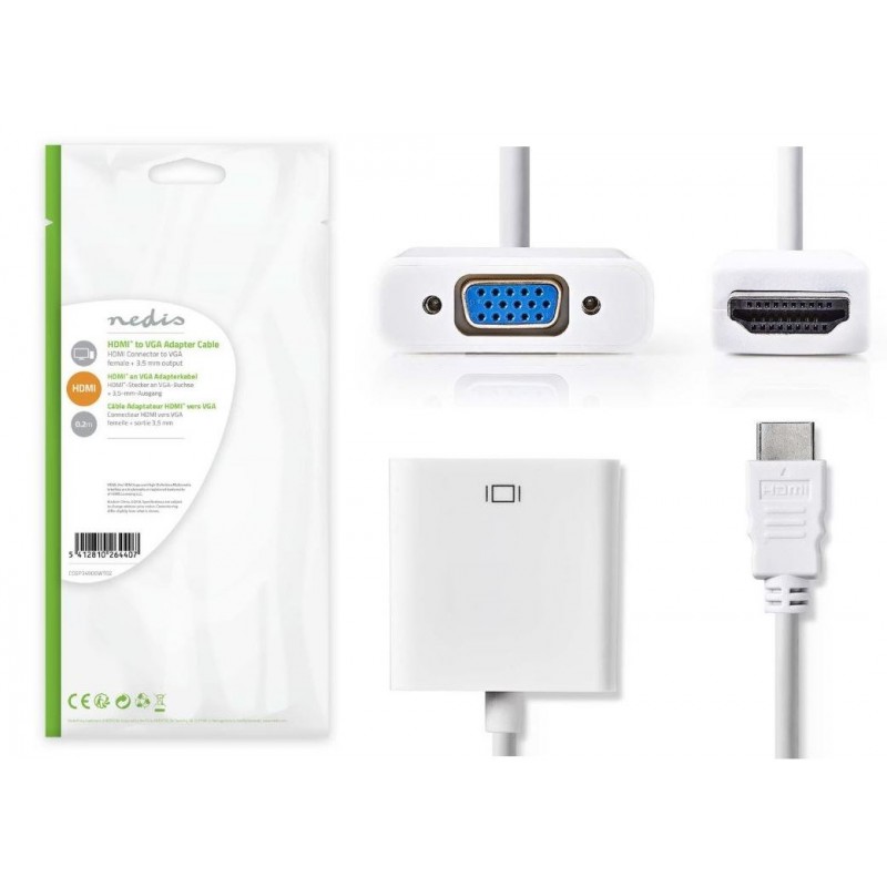 Convertidor HDMIm-VGAh +Audio 3.5mm NEDIS.Conecte un dispositivo HDMI a una conexión VGA de una pantalla LCD o LED.