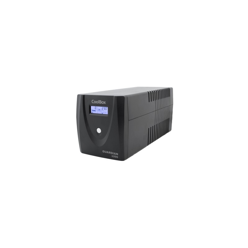 SAI Guardian 3 1200VA con LCDSistema de alimentación ininterrumpida 1200VA/720W.Protección completa frente a picos de tensión y cortes de suministro eléctrico.El SAI GUARDIAN de 1200VA/720W brinda protección efectiva para tus equipos. Con entrada de 220/230/240 VAC y salida regulada de 220/230/240 VAC, ofrece una forma de onda sinusoidal simulada en modo batería.Con dos baterías de 12V y 7Ah, garantiza recarga en 6-8 horas al 90%.Incorpora pantalla LCD que muestra el nivel de carga de la batería, la capacidad de la batería, modo AC información sobre voltajes y avisos de sobrecarga, fallo y batería baja.